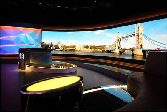 2012年,倫敦奧運(yùn)會電視轉(zhuǎn)播室里的洲明顯示屏。