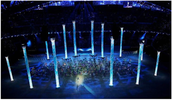 2014年,洲明創(chuàng)意柱形屏點(diǎn)亮俄羅斯索契冬奧會開幕式。